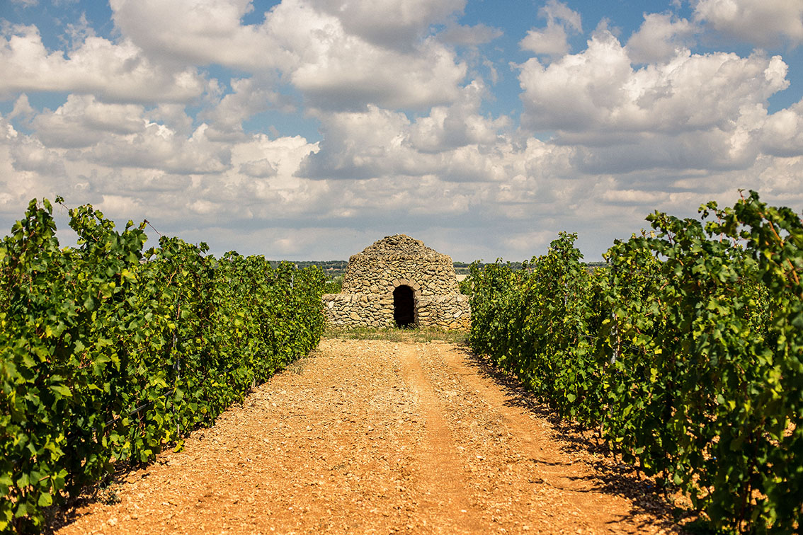 In queste terre la viticoltura è tradizione tramandata da generazioni: filari ad alberello, basse rese, raccolta manuale e cura attenta di ogni vite. La tenuta unisce la forza di un territorio unico alla visione contemporanea di Masca del Tacco, trasformando un patrimonio antico in vini dal carattere intenso, elegante e profondamente mediterraneo.